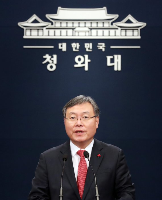 이 관계자는 "지금 그 상태가 이어지고 있고, 민정수석은 단 한 차례 회의에 빠진 일이 없었고 오늘도 아침 현안회의에 참석했다"며 "거취 문제는 변화가 없는 상태"라고 전했다. 사의표명 의견은 유지하고 있다는 의미다.