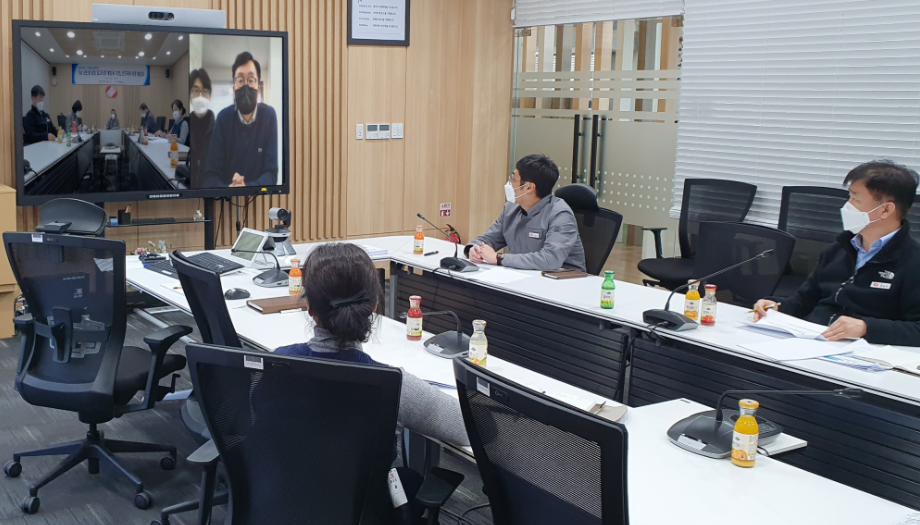 한국동서발전과 엠블럭의 관계자들이 비대면으로 연구과제의 최종 발표회를 개최하고 있다. [사진 = 한국동서발전] |