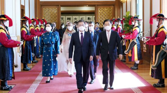 남스라이 에르덴토야 주한 몽골 대사도 "문 대통령이 올해 몽골을 방문해 주시기 기대한다"며 "동북아 평화와 안전을 위한 한국 정부의 노력을 적극 지지한다"고 말했다. 페카 멧초 주한 핀란드 대사 역시 혁신, 디지털, 스타트업, 다자주의 복원 등에 있어 양국 간 협력을 강조하며 한반도 평화 구축을 위한 우리 정부의 노력을 지지한다고 밝혔다.