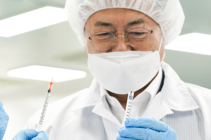 문 대통령은 "풍림파마텍은 국민들을 위해 12만7천개의 주사기를 무상으로 제공할 예정"이라며 "정부는 신아양행과 두원메디텍 주사기 4천만개를 구매해 역시 백신 접종에 사용할 계획"이라고 강조했다.