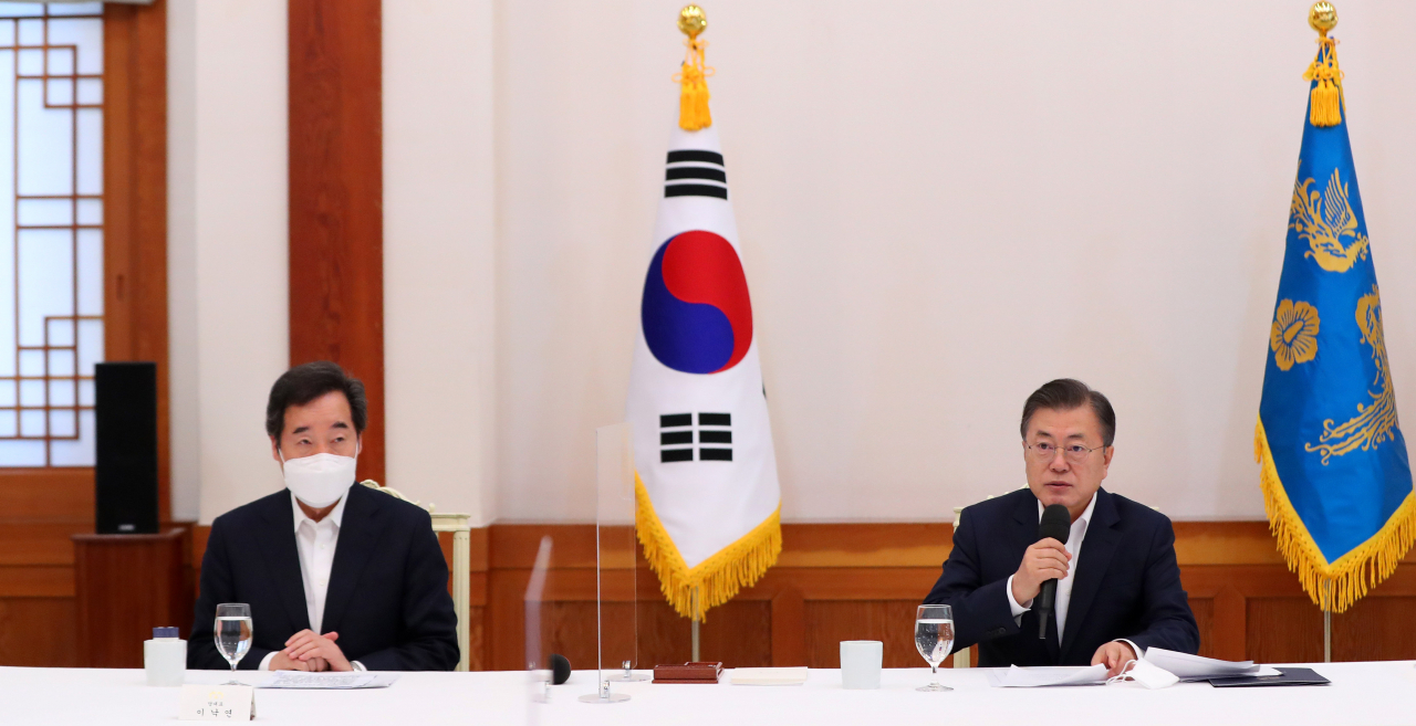 [헤럴드경제=박병국 기자]문재인 대통령이 19일 4차 재난지원금 지급 규모에 대해 "당에서도 재정의 여건을 감안해 주기를 바란다"고 말했다. 문 대통령은 이날 오전 청와대에서 더불어민주당 지도부 초청 간담회를 갖고 "처음부터 당과 생각이 똑같을 수는 없겠지만 사각지대가 최소화되는 피해지원책이 될 수 있도록 정부에서도 적극적으로 임하겠다"며 이같이 말했다. 당정은 4차재난지원금 지급 규모를 놓고 이견을 보이고 있다.