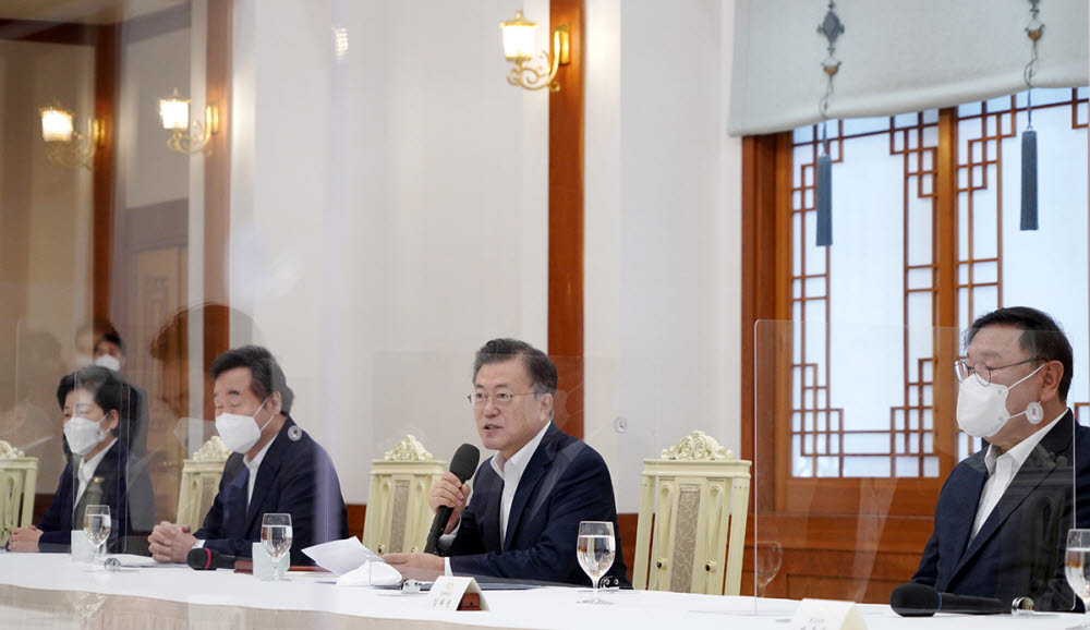 문 대통령은 4차 재난지원금과 관련해 “당정청이 최대한 사각지대를 줄여 달라”고도 당부했다. 특히 “맞춤형 재난지원금은 소득과 비교해 지원해야 하는데, 소득 파악이 안돼 그동안 일률적으로 지원했다. 앞으로 소득 파악 시스템 마련에 당정청이 노력을 기울여야 한다”고 주문했다.