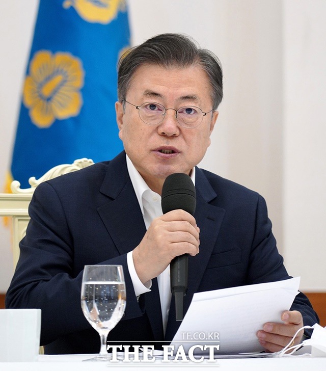 [더팩트ㅣ청와대=허주열 기자] 문재인 대통령이 19일 더불어민주당 지도부와의 간담회에서 "코로나19에서 벗어날 상황이 되면 국민 위로지원금, 국민 사기진작용 지원금 지급을 검토할 수 있다"고 말한 것으로 확인됐다.