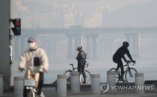 (서울=연합뉴스) 김은경 기자 = 일요일인 21일 초미세먼지가 일부 남부지역을 제외한 전국 대부분에서 '나쁨' 상태를 보이고 있다.