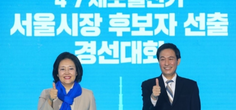 이어 "민주당의 방침은 늘 서울시민에게 꿈과 미래를 주는 것이었다"며 "매일 혁신하는 혁신의 정신이 민주당의 정신이라고 생각한다"고 받아쳤다.