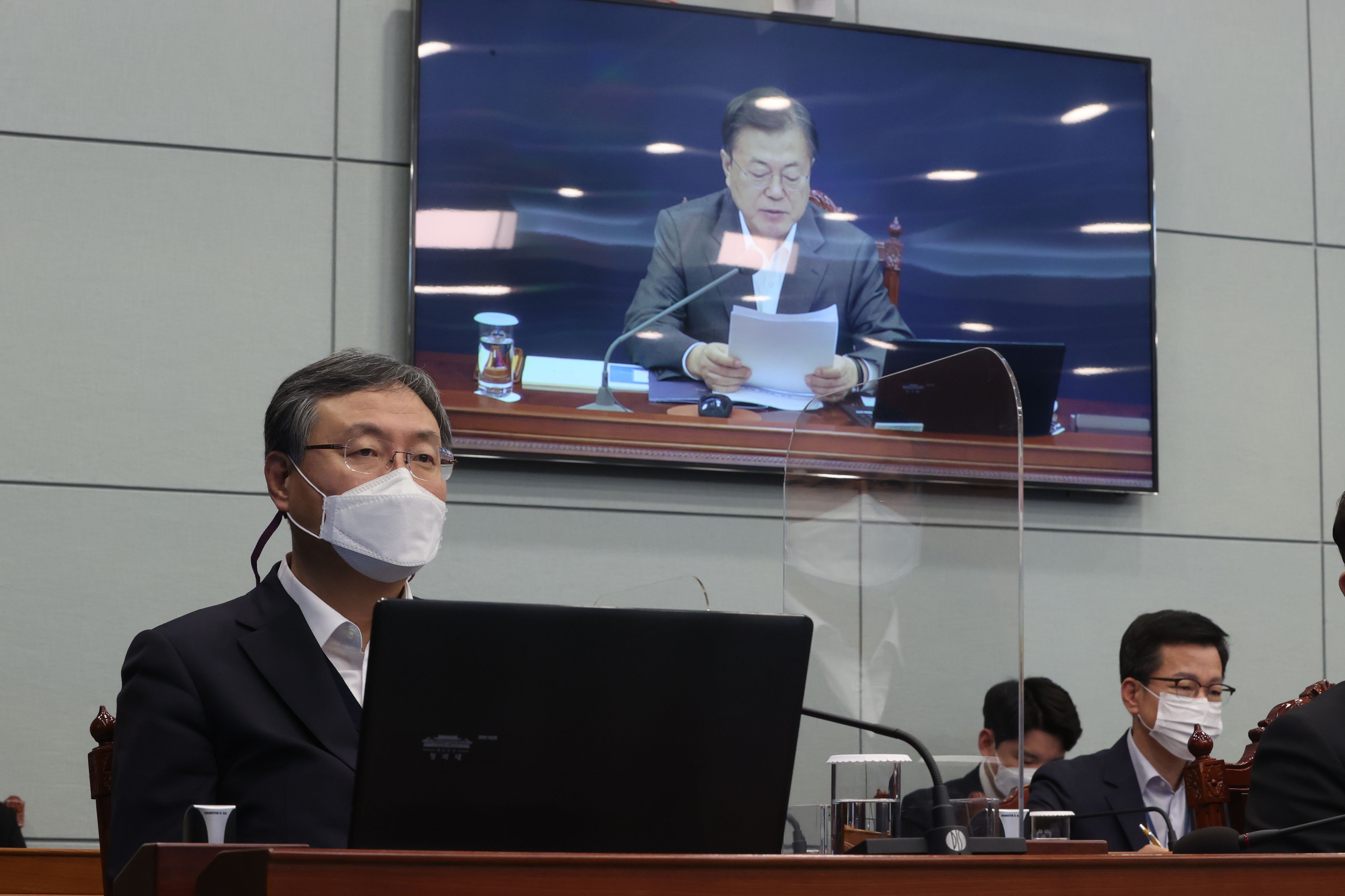 신현수 대통령비서실 민정수석이 22일 청와대에서 열린 수석·보좌관 회의에서 문재인 대통령의 발언을 듣고 있다./연합뉴스 |
