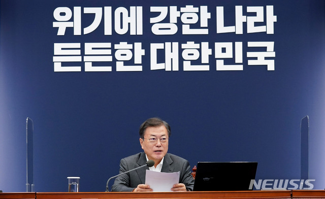 문 대통령은 다만 "통계청에서 발표한 지난해 4분기 가계동향조사결과를 보면 코로나 상황이 가계소득에 큰 부담이 됐다는 것을 확인할 수 있다"며 "특히 저소득층인 1~2분위에서 소득이 크게 감소했고 경제활동 위축과 방역조치 강화로 소상공인 자영업자들의 사업소득도 줄었다"고 지적했다.