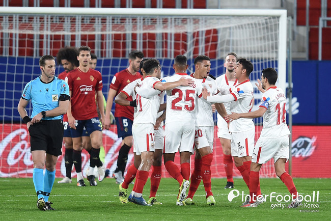 세비야는 23일 오전 5시(한국시간) 스페인 나바라주 팜플로나에 위치한 에스타디오 엘 사다르에서 열린 2020-21시즌 스페인 프리메라리가 24라운드에서 오사수나에 2-0 승리를 거뒀다. 이날 승리로 세비야는 승점 48점을 기록해 바르셀로나를 제치고 3위에 올랐다.