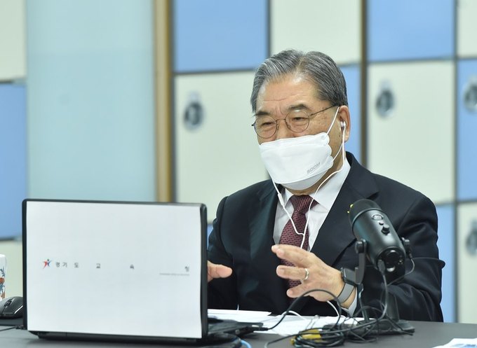 이재정 경기도교육감이 25일 열린 온라인 브리핑에서 새 학기 학교 운영 계획을 언급하고 있다. 경기도교육청 제공 |