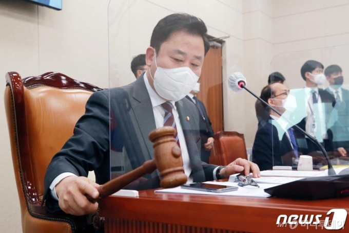 (서울=뉴스1) 박세연 기자 = 송갑석 위원장 직무대리가 26일 오전 서울 여의도 국회에서 열린 산업통상자원중소벤처기업위원회 전체회의에서 의사봉을 두드리고 있다. 2020.11.26/뉴스1 |