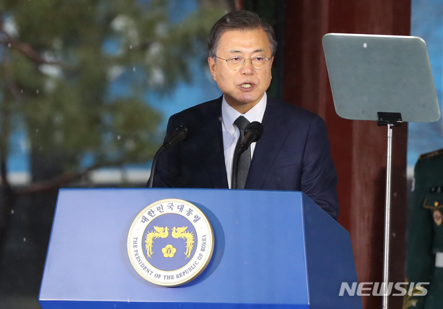 [서울=뉴시스]추상철 기자 = 문재인 대통령이 1일 오전 서울 종로구 탑골공원에서 열린 제102주년 3·1절 기념식에 참석해 기념사를 하고 있다. 2021.03.01. scchoo@newsis.com |
