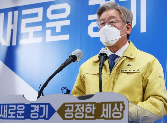 이재명 경기도지사가 지난달 17일 오전 경기도 수원시 경기도청에서 경기도 공공기관 3차 이전 추진 기자회견을 하고 있다. (사진=연합뉴스) |