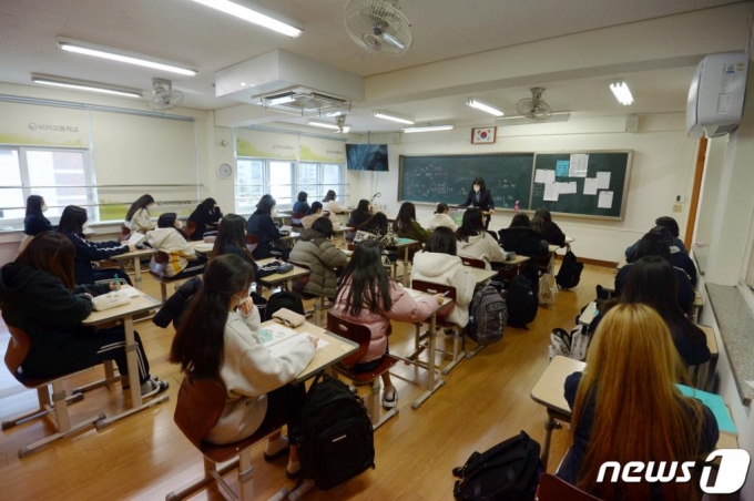 2021학년도 새 학기 개학날인 2일 오전 광주 광산구 비아고등학교에서 학생들이 수업에 열중하고 있다./사진=뉴스1 |