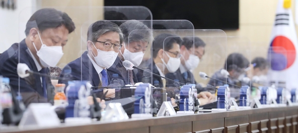변창흠 국토교통부 장관(왼쪽 두번째)이 2일 오후 세종시 정부세종청사에서 열린 '국토부-공공기관 간담회 및 청렴 실천 협약식'을 주재하며 발언하고 있다. /연합뉴스 |