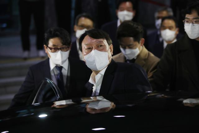 윤석열 검찰총장이 3일 오후 대구고·지검 직원과의 간담회를 끝낸 후 귀경하기 위해 차량에 오르고 있다. 대구=연합뉴스 |