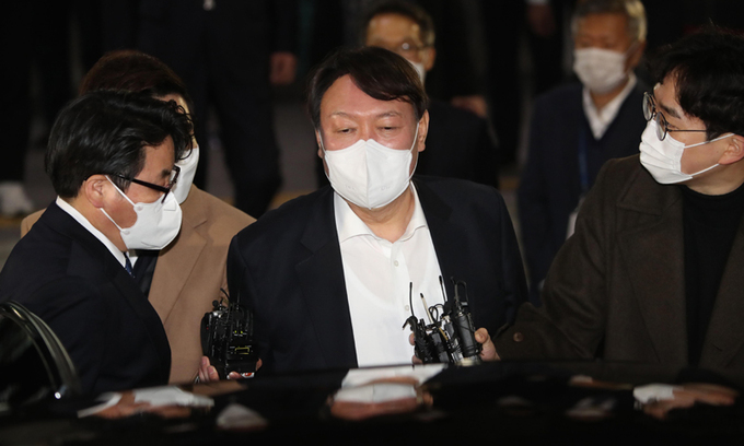 윤석열 검찰총장이 지난 3일 오후 대구고검과 지검에서 직원과의 간담회를 끝낸 후 차량을 타려 이동하고 있다. 연합뉴스 |