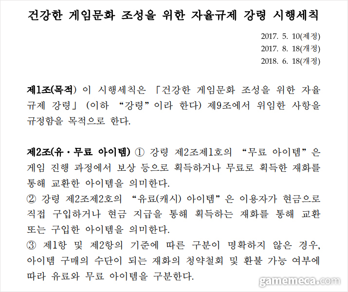 ▲ 확률형 아이템 자율규제 강령 세칙 (자료출처: 한국게임정책자율기구 공식 홈페이지) |