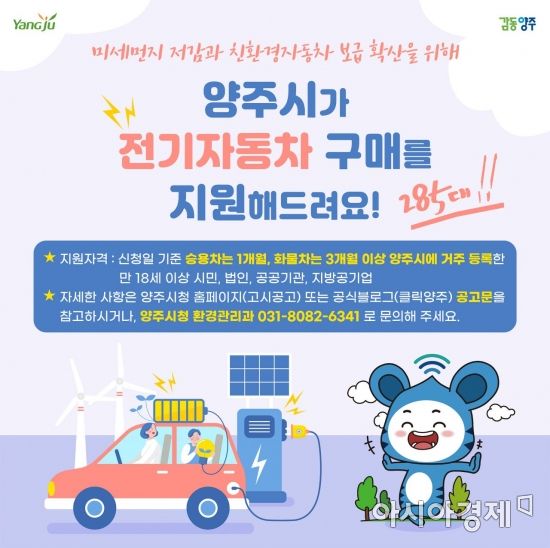 [아시아경제 라영철 기자] 경기 양주시가 미세먼지 저감과 친환경 자동차 보급 확산을 위해 전기 자동차 구매지원 사업을 추진한다.