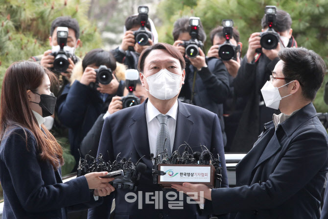 윤석열 검찰총장이 4일 오후 서울 서초구 대검찰청에서 사퇴 입장을 밝히고 있다. (사진=이영훈 기자) |