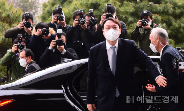윤석열 검찰총장이 4일 오후 서울 서초구 대검찰청 현관에서 하차하고 있다. 박해묵 기자/mook@ |