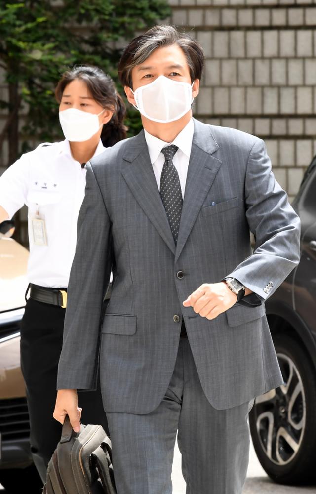 조국 전 법무부장관이 지난해 7월 3일 오후 점심식사를 마치고 오전에 이어 서울 서초동 서울중앙지법 에서 열린 자신의 네 번째 공판에 출석하고 있다. 왕태석 선임기자 |