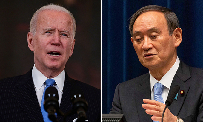 조 바이든 미국 대통령(왼쪽), 스가 요시히데 일본 총리. AFP연합뉴스 |