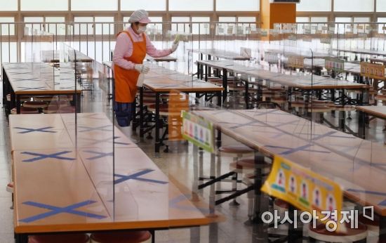 [아시아경제 한진주 기자] 코로나19 상황에서 초등학교 1·2학년과 고등학교 3학년생은 매일 등교 수업을 하는 가운데 마스크를 벗을 수밖에 없는 급식 시간 때문에 학부모들이 불안감을 감추지 못하고 있다.