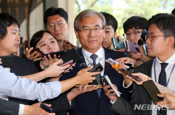 대법원 비자금 조성 의혹을 받고 있는 이민걸 전 법원행정처 기획조정실장이 지난 2018년 9월12일 오전 서울 서초구 서울중앙지방검찰청에 출석하며 취재진의 질문에 입을 닫고 있다./사진=뉴시스 |