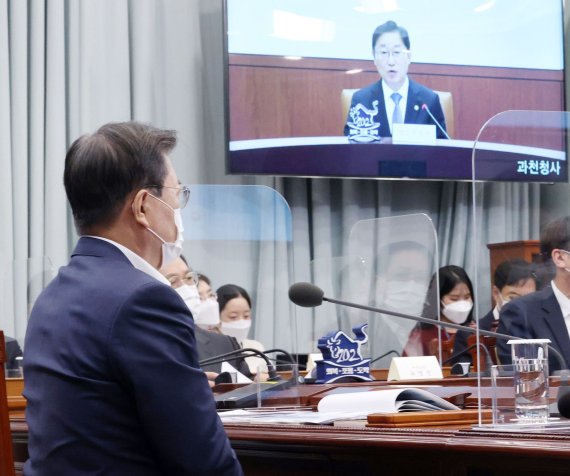 이날 업무보고에는 박범계 법무부 장관과 전해철 행정안전부 장관 등 관계 부처 외에도 이낙연 민주당 대표, 김태년 원내대표, 홍익표 정책위의장, 윤호중 국회 법제사법위원장, 서영교 행정안전위원장 등이 참석했다.