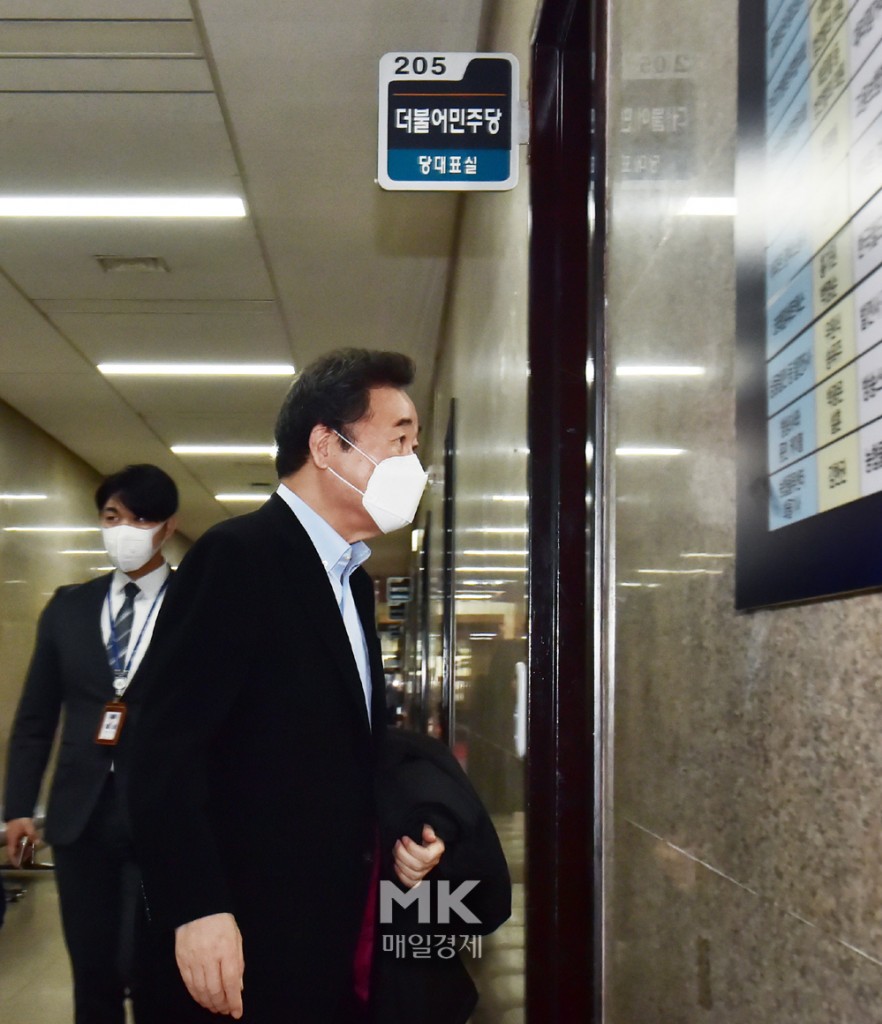 당대표직 퇴임을 앞둔 이낙연 대표가 9일 서울 여의도 국회 본관 206호에서 열린 더불어민주당 비공개 최고위원회의 참석차, 회의실로 이동하고 있다. 2021.3.9.[이승환기자] |