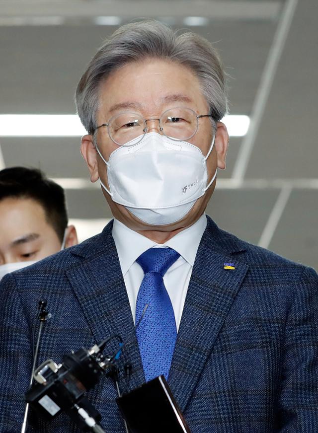 이재명 경기지사가 9일 더불어민주당 당무위원회에 참석한 후 취재진들의 질문에 답변하고 있다. 뉴스1 |