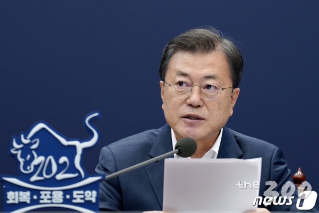(서울=뉴스1) 이광호 기자 = 문재인 대통령이 8일 오후 청와대 여민관에서 열린 법무부ㆍ행정안전부 업무보고에 참석해 발언하고 있다. 2021.3.8/뉴스1 |