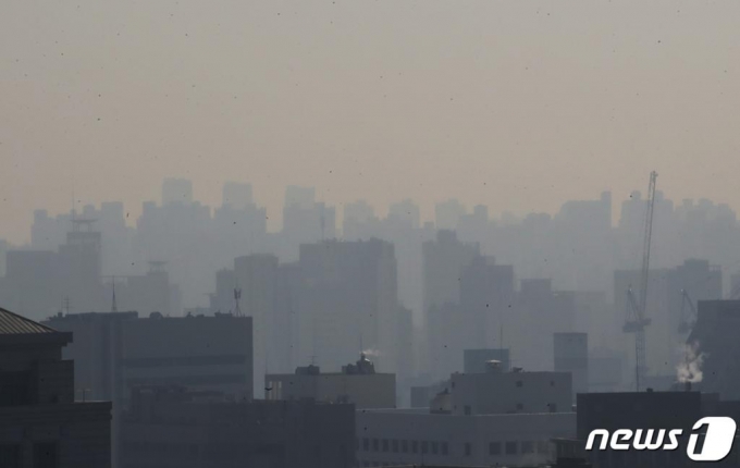 (서울=뉴스1) 송원영 기자 = 초미세먼지 농도가 '나쁨' 상태를 나타낸 지난 5일 오전 서울 종로구 도심이 뿌옇다. 이날 기상청은 미세먼지 농도는 경기 남부·충남은 '나쁨', 그 밖의 권역은 '좋음'∼'보통' 수준으로 예상했다. 2021.3.5/뉴스1 |