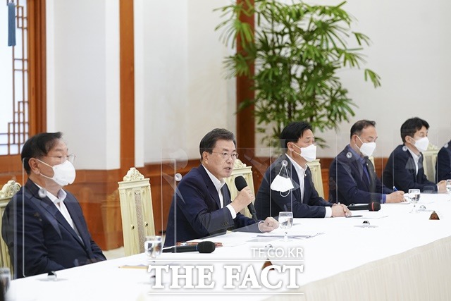 [더팩트ㅣ청와대=허주열 기자] 문재인 대통령은 10일 가덕도 신공항 건설 추진과 관련해 "단순히 동남권 거점 공항 마련 차원에서만 추진된 게 아니라 국가균형발전을 위한 부·울·경 메가시티 핵심 고리이자, 신항만 도시와 연계해 물류도시 효과 극대화 구상"이라고 밝혔다.