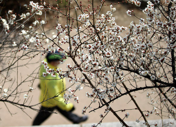 10일 오후 한 시민이 서울 청계천을 산책하고 있다. 연합뉴스 |