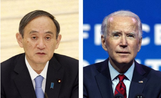 스가 요시히데 일본 총리와 조 바이든 미국 대통령 |