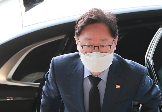 박범계 법무부 장관이 11일 오전 경기도 정부과천청사 법무부 청사로 출근하고 있다. 뉴스1 |