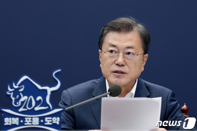 문재인 대통령이 지난 8일 오후 청와대 여민관에서 열린 법무부ㆍ행정안전부 업무보고에 참석해 발언하고 있다. /사진=뉴스1 |