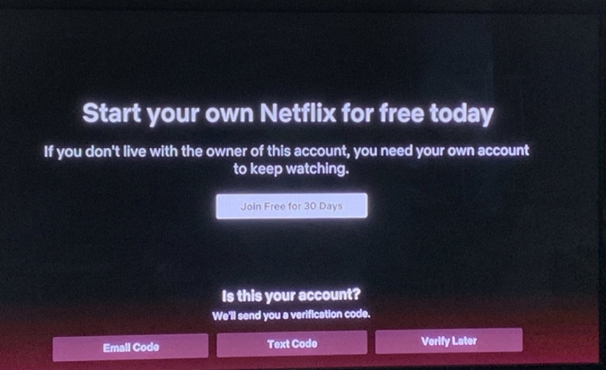 12일(현지시간) CNBC와 워싱턴포스트(WP) 등에 따르면 넷플릭스는 최근 자사 콘텐츠의 무단 시청을 막기 위해 복수 이용자들의 계정 및 비밀번호 공유를 막는 정책 테스트를 진행하고 있다. 비밀번호 공유가 의심될 경우 "계정 주인과 같이 살고 있지 않다면 시청을 위한 자신의 계정이 필요하다"는 메시지를 전송한다. 이와 함께 해당 계정 소유자의 문자메시지나 이메일로 코드를 전송해 본인 확인을 요청한다.