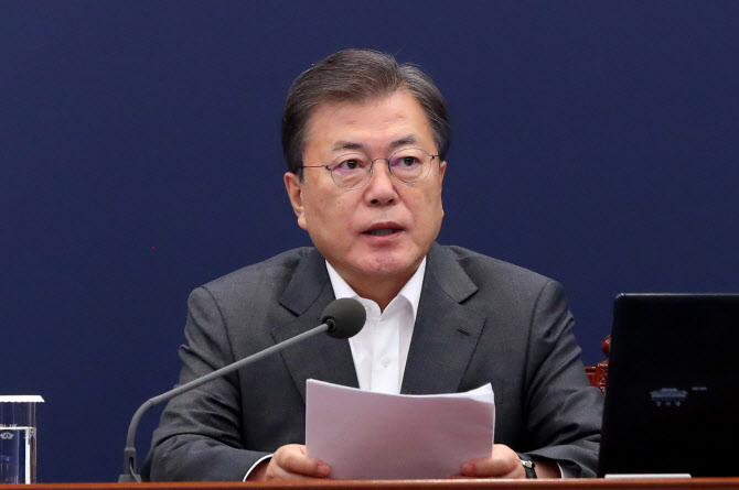 문재인 대통령이 15일 오후 청와대에서 열린 수석·보좌관회의에서 발언을 하고 있다.(사진=연합뉴스) |