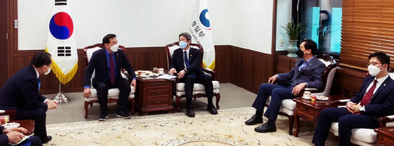 국민의힘 김석기, 김기현, 태영호, 지성호 의원은 이날 오후 2시20분께 정부서울청사 찾아 이 장관과 50여분간 비공개 면담을 가졌다.
