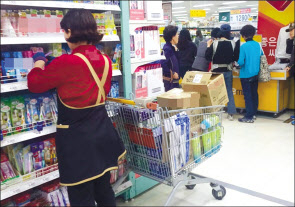 상품을 정리 중인 마트노동자. 기사의 특정 사실과 관련이 없음. [헤럴드DB] |