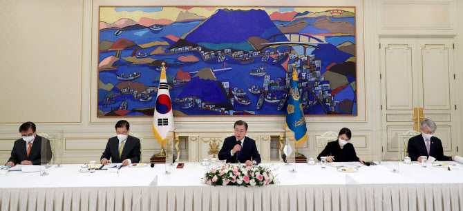 문재인 대통령이 16일 오후 청와대 본관에서 디지털협력포럼 참석 중남미 4개국 장관을 접견하고 있다.(사진=뉴시스) |
