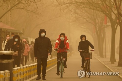 베이징 하늘 누렇게 뒤덮은 황사 |