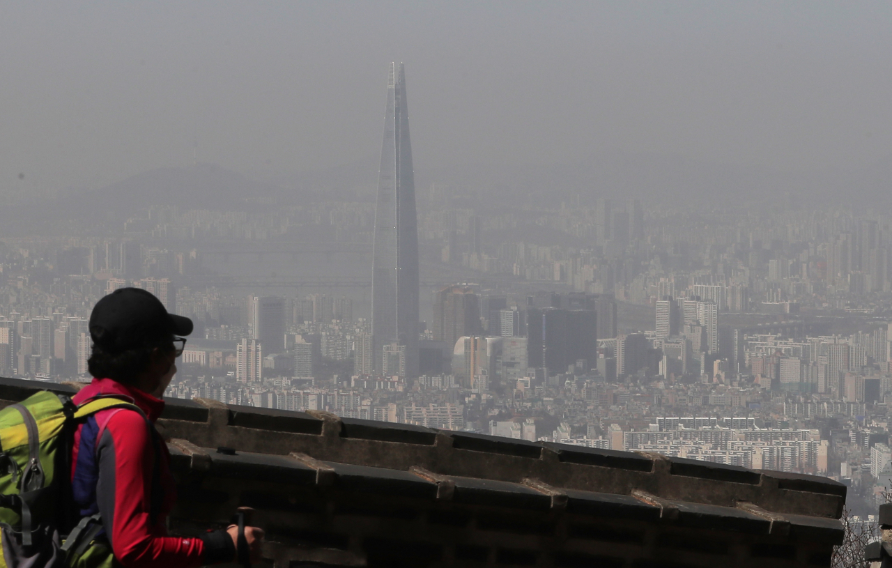 황사 영향 등으로 서울지역 미세먼지 농도가 나쁨 수준을 보인 17일 서울의 뿌연 모습. [연합] |
