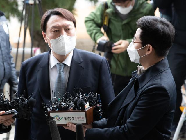 윤석열 전 검찰총장이 지난 4일 서울 서초구 대검찰청 현관에서 총장직 사퇴 의사를 발표하고 있다. 뉴스1 |