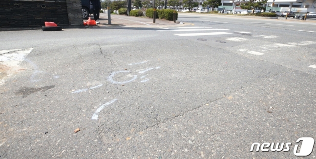 18일 오전 레미콘 트럭과 등교하던 초등학생이 부딪힌 현장. 사고 이후 주변이 정리된 모습이다. /사진=뉴스1 |