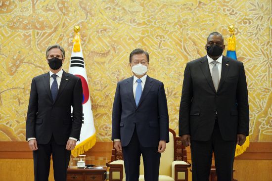강민석 청와대 대변인은 18일 오후 문 대통령이 블링컨·오스틴 장관을 오후 3시부터 50분간 접견했다고 밝혔다.