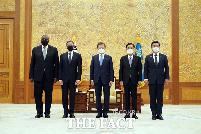 청와대 핵심 관계자는 "한미 양국 외교·국방 수장 4명이 한 자리에서 회합한 것은 양국 간 긴밀한 동맹과 전략적 협의를 상징하는 의미가 있다"라며 "바이든 대통령이 행정부 출범 초기에 한미 외교부 수장을 동시에 만날 수 있도록 함으로써 한미동맹을 중시한다는 입장을 보여줬다"고 설명했다.