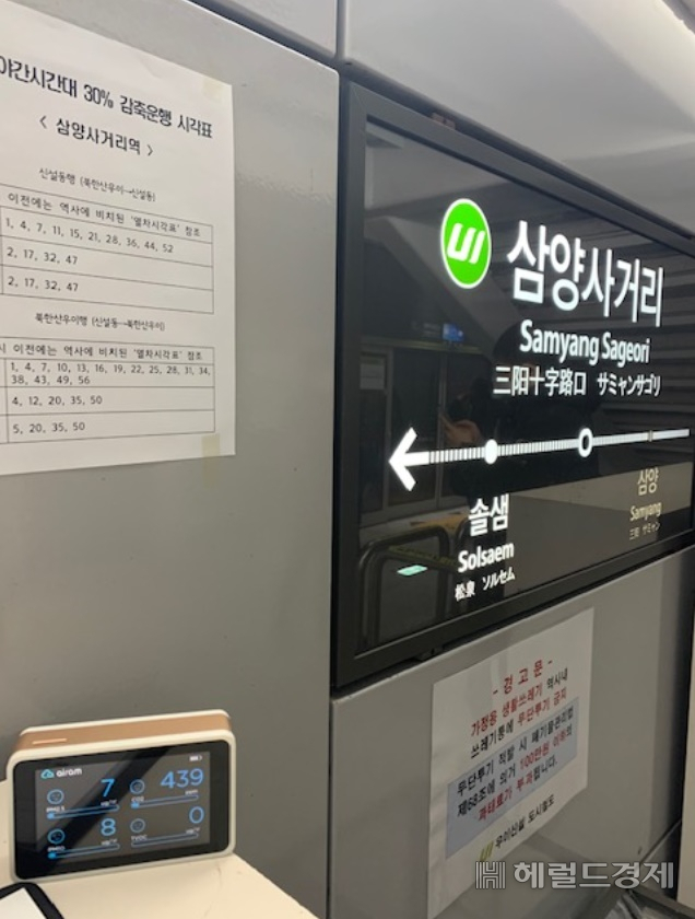우이신설선 역사 내 공기질을 측정하고 있는 모습. [강북구 제공] |